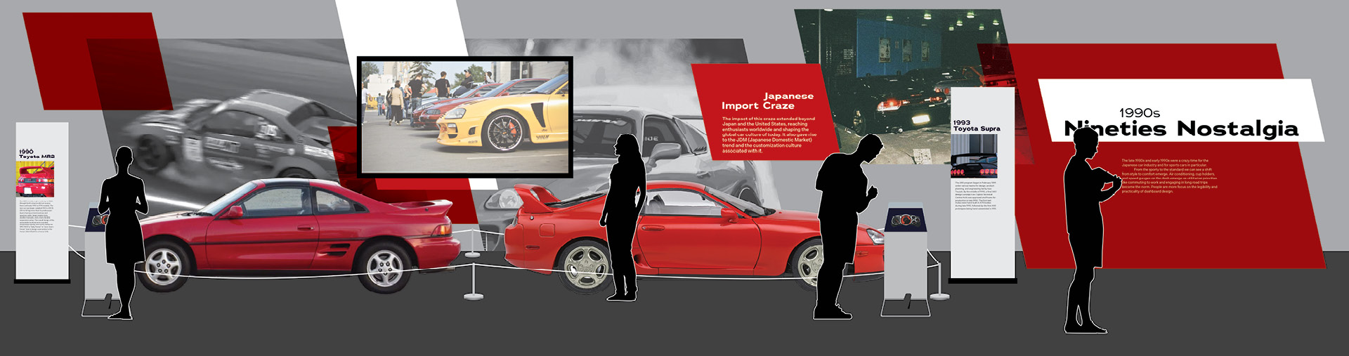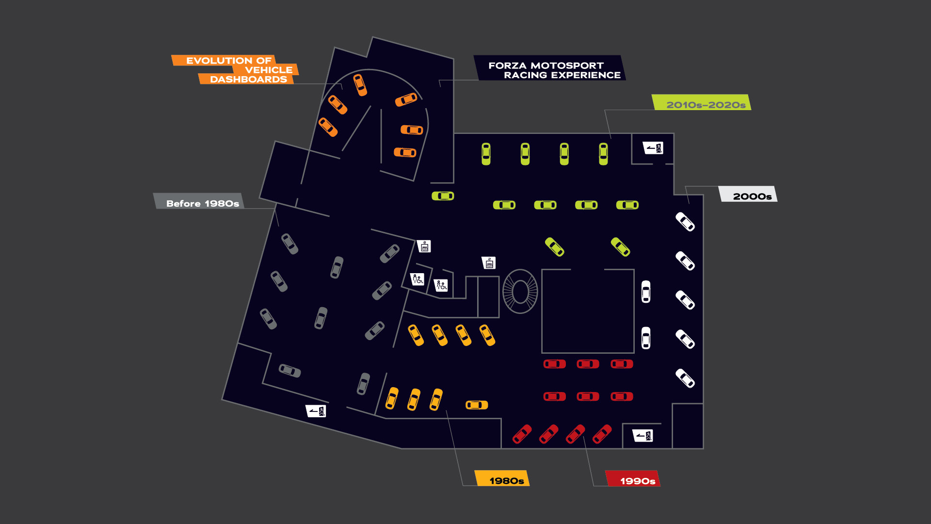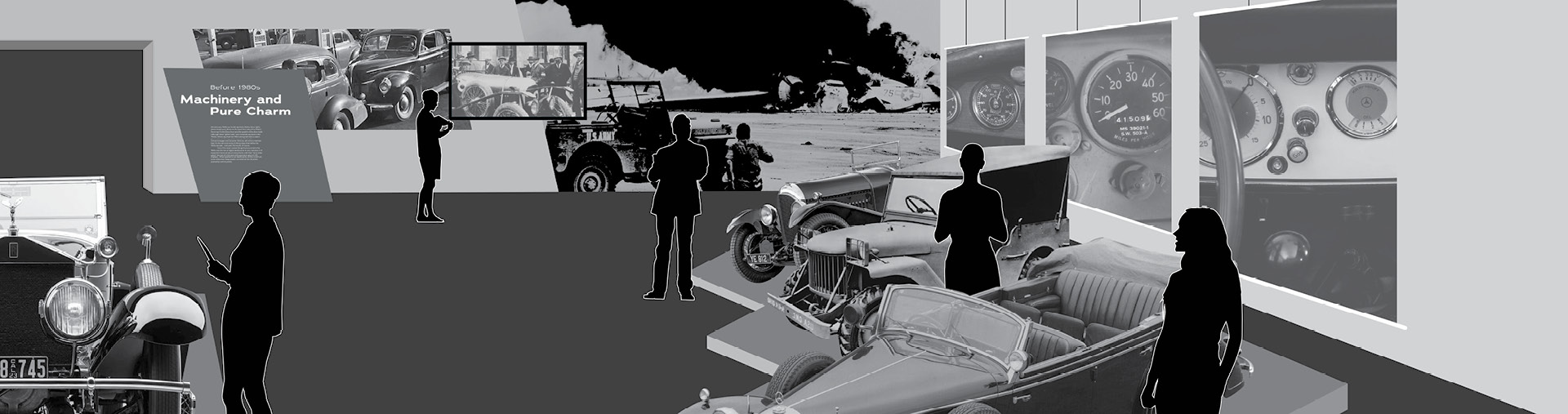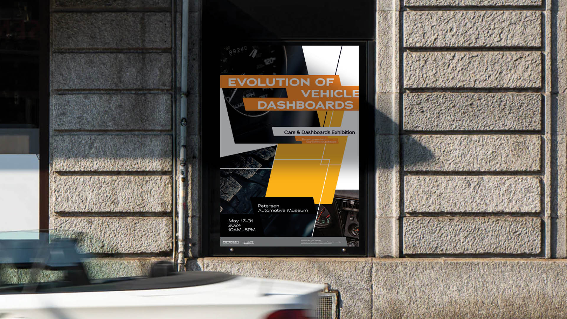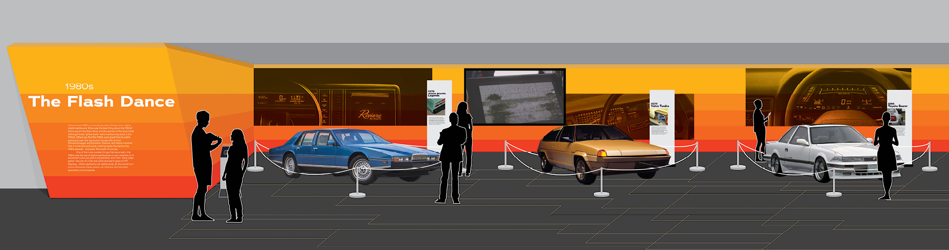 The Evolution of Vehicle Dashboards is an immersive video-based experience that allows viewers to navigate the story and design purpose behind the dashboard through the use of two screens, projected dashboards and historical events.