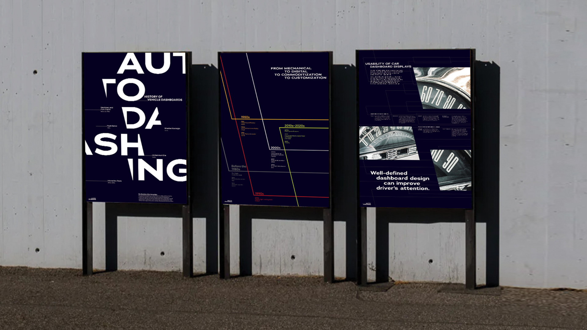 Rather than prescribing a single template for the “perfect” dashboard, Auto Dashing advocates understanding the principles of typography, hierarchy, and accessibility. Through different experimental data, we could observe how typography affects the driving experience. From the feature and form of different typefaces to the reaction time under a fast environment.