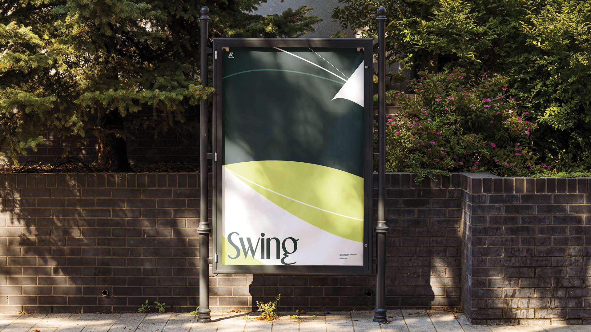 The circular element on the logo is used to convey the ball's trajectory with the swing movements. Different objects in the kit are also displayed on the poster. At the same time, the characteristics of golf and the core concept of birdie are conveyed in geometric illustrations.