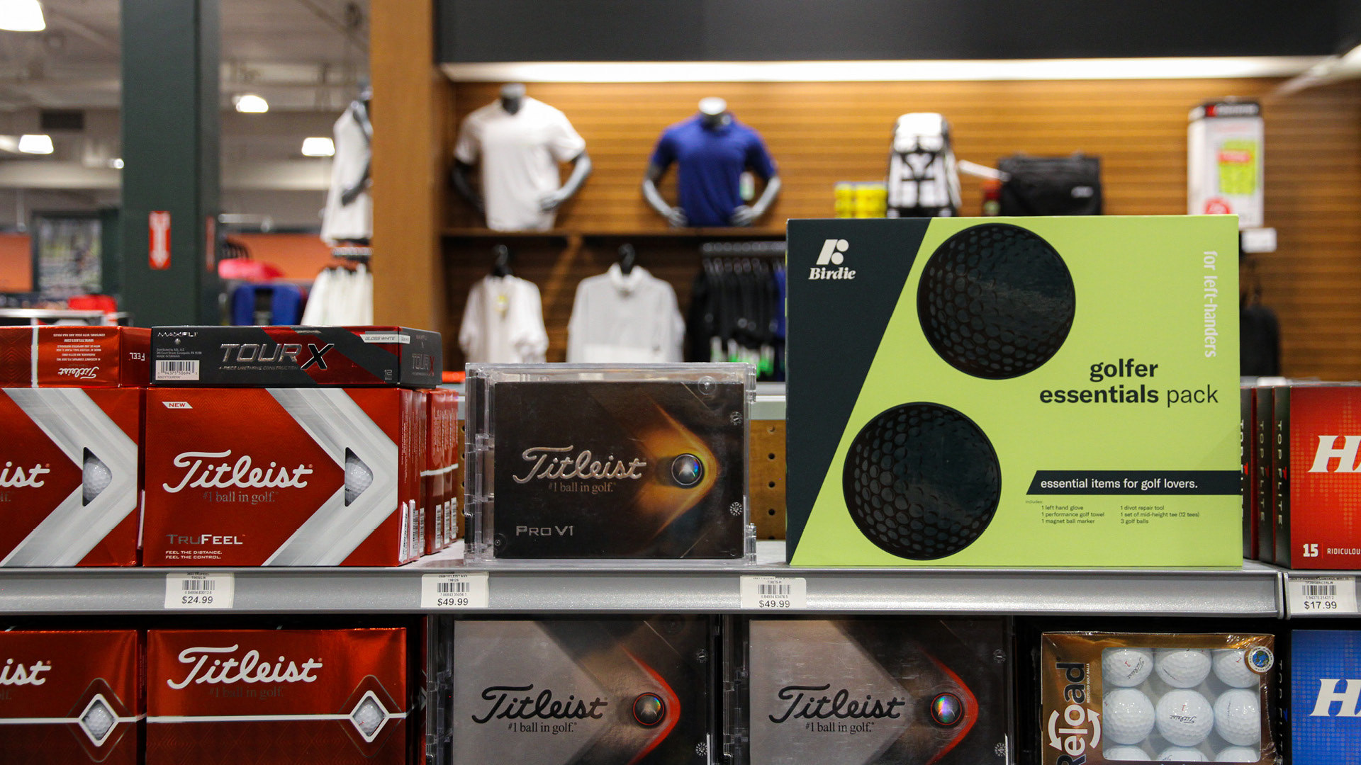 In order to see the real-world visual of the packaging, I took the packaging to a golf shop and took the following photos. The minimalist design, typography, and bright colors make it stand out among many golf products.