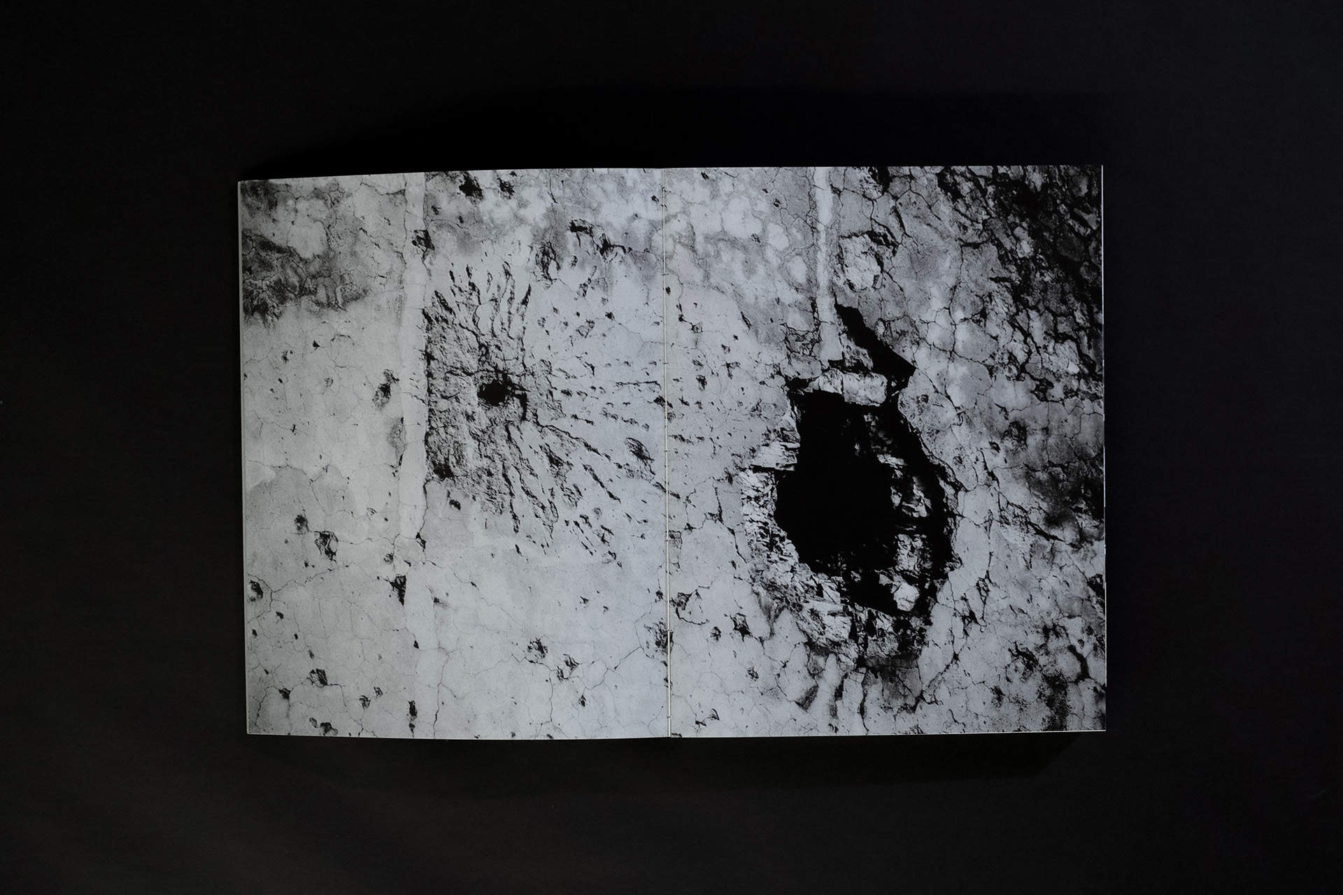 Concepts of geometric shapes and raw textures are used throughout the book in the form of typography, imagery, and geometric graphic elements.